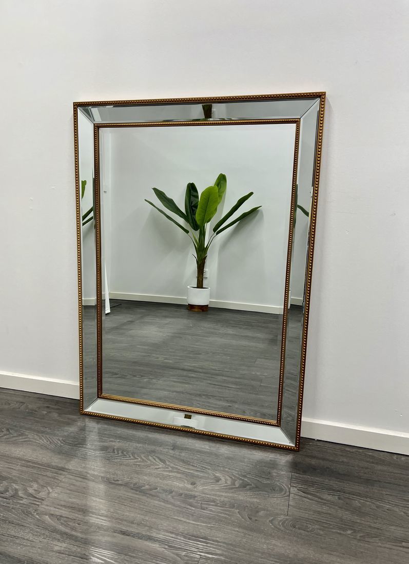 This mirror is ideal for use in living rooms, bedrooms, or entryways, effortlessly elevating the ambiance of your home. Whether mounted on a wall or leaned for a more relaxed look, the Classic Beaded Gold Framed Rectangle Mirror adds a touch of warmth and opulence to your décor. Designed for both practicality and style, it’s a must-have piece that blends seamlessly with any setting.